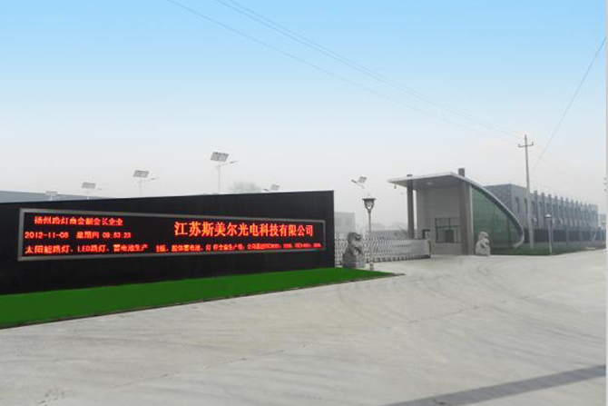 江蘇斯美爾光電集團有限公司前身為“高郵市斯美爾光源電子電器廠”,總部位于具有“燈具之鄉”之稱的江蘇省揚州市高郵送橋鎮工業園區,廠房面積20000多平方米。十六年來,斯美爾一直專注于戶外照明、交通器材、太陽能發電組件、電力器材的生產、施工。產品包括:太陽能電池板、交通標志牌、太陽能路燈、智慧路燈、LED燈具、免維護蓄電池、鋰電池組、電力鐵塔、桿件、控制箱。產品銷往全國各級城市及世界55個國家。集團連續兩屆當選江蘇省照明商會常務副會長單位,揚州市路燈產業商會副會長單位;連續9年被評為國家高新技術企業;擁有多項施工設計資質包括:市政總承包三級、電力總承包三級、照明設計乙級、城市及道路照明施工二級、承裝(修、試)五級。