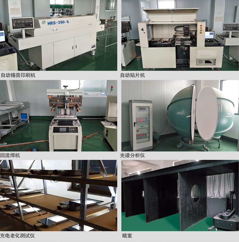 LED燈具車間擁有先進(jìn)的封裝設(shè)備,其中包括--些針對(duì)任何封裝的高功率LED光色電分檔的專用生產(chǎn)線設(shè)備,測(cè)試成品光強(qiáng),光照度的暗室以及模擬高低溫,沙塵等環(huán)境的檢測(cè)設(shè)備。所有成品都必須經(jīng)過各種檢測(cè)設(shè)備的嚴(yán)格檢驗(yàn),才可以出廠。