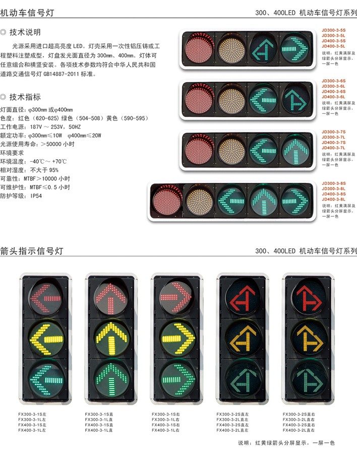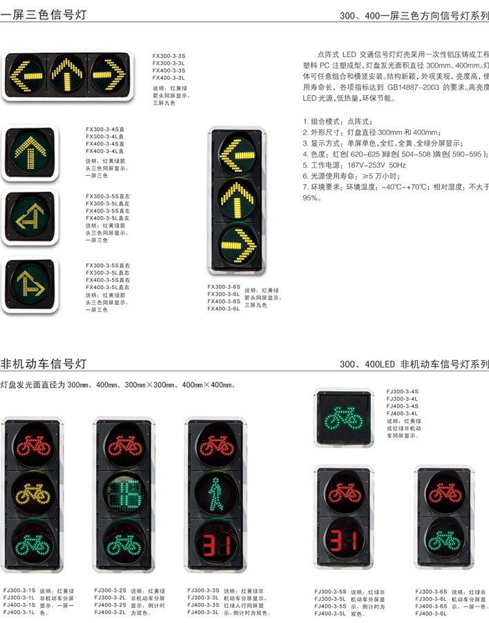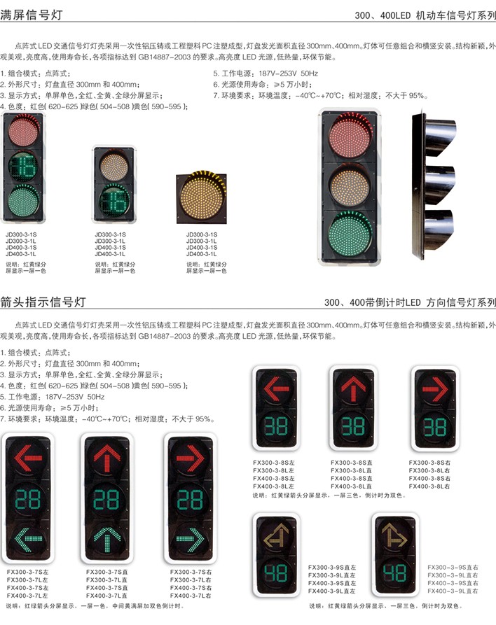 交通信號燈光源采用進口超高亮度LED,具有亮度柔和均勻.無光暈色斑、無顆粒感.無光污染、低功率、大視角、采用恒流源,亮度穩定無閃爍。燈殼采用一次性鋁壓鑄或I程塑料( PC )注塑成型,燈盤發光面直徑為200mm300mm.400mm。燈體可任意組合和橫豎安裝。