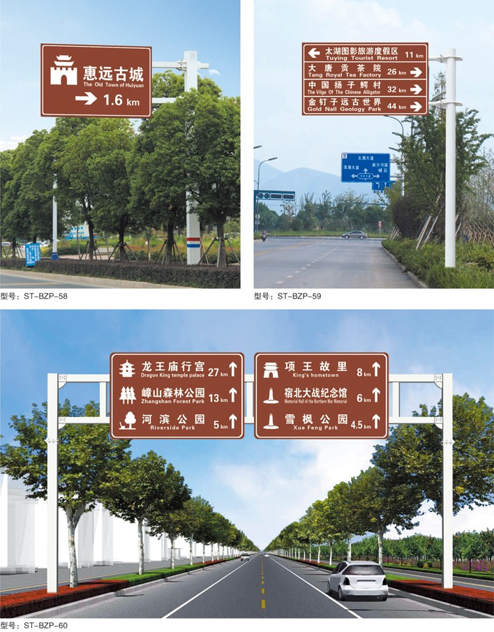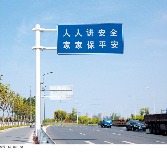 產品特點:● 交通標志牌是用來提醒、警示和引導交通參與者, 在行駛中根據道路情況提前采取相應措施, 以切實維護交通安全的重要設施。● 桿件表面應進行熱鍍鋅處理,立桿橫臂、法蘭盤以及各種連接件采用熱浸鍍……