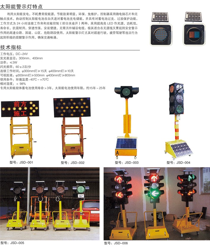 太陽能警示燈特點:利用太陽能發電,不耗費常規能源,節能效果明顯,環保、免維護。控制器采用微電腦芯片和無觸點技術,自動控制太陽能電池在白天進對蓄電池充電儲能,并具有對蓄電池過充、過放保護功能。工作方式為……